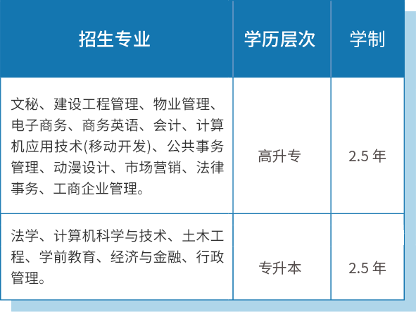 具有国民教育系列专科及以上学历者,可报读本科(专升本)专业学历学习。